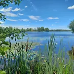 离Ferienhaus Am Bauernsee到WIBI Straussenhof Kagel走路只需11分钟,而到Lichtenower Ziegelei只需25分钟. 别墅设有2间卧室和大厨房,提供日光浴 和阳光露台等休闲设施.这座别墅距离市中心很近,步行只需5分钟就可抵达.
